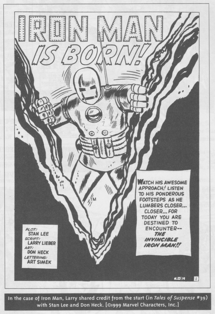 Previous Image Next Image Caption3 In the case of Iron Man, Larry shared credit from the start (in Tales of Suspense #39) with Stan Lee and Don Heck.