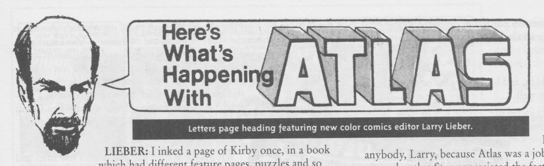 Previous Image Next Image Caption4 Letters page heading featuring new color comics editor Larry Lieber.