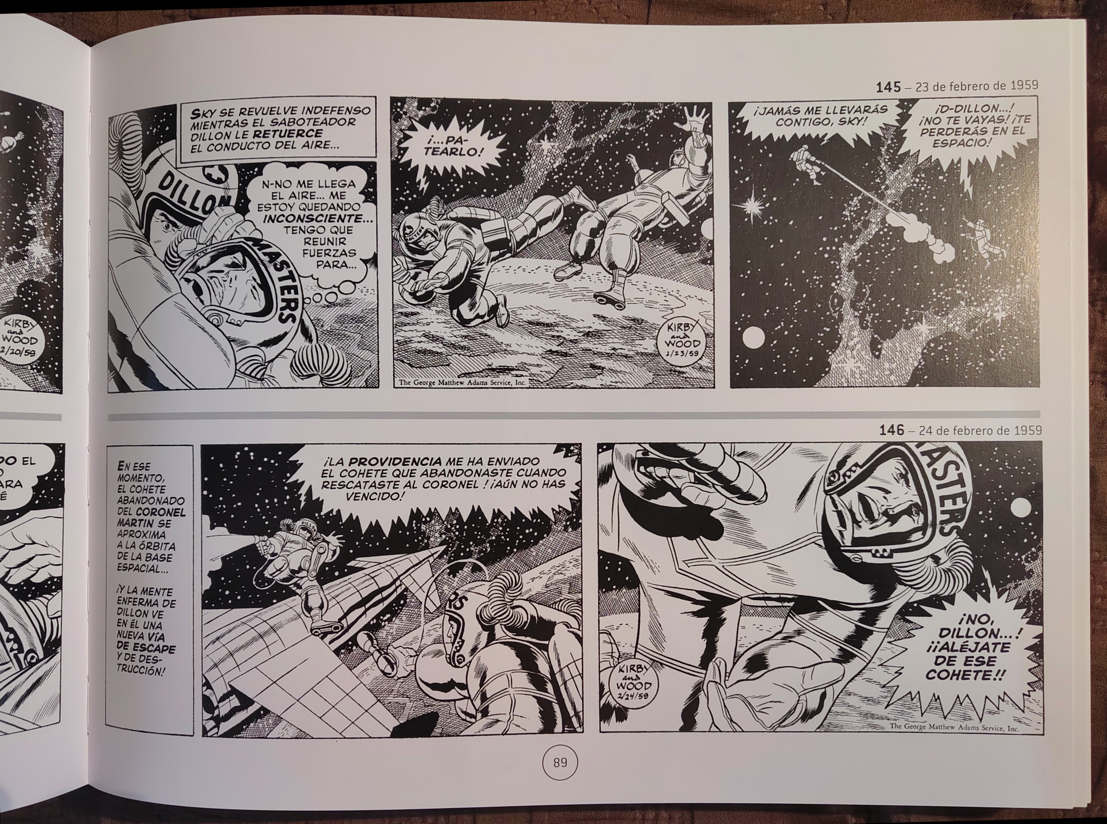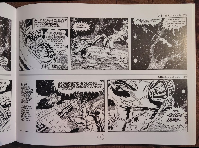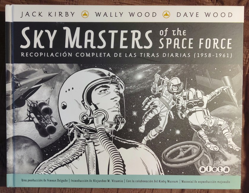I recently began reading the complete run of Jack Kirby’s Sky Masters daily newspaper strips in Spanish. This endeavour is nothing short of a joy thanks to the exquisite Sky Masters of the Space Force: Recopilación de todas las tiras diarias (1958-1961).