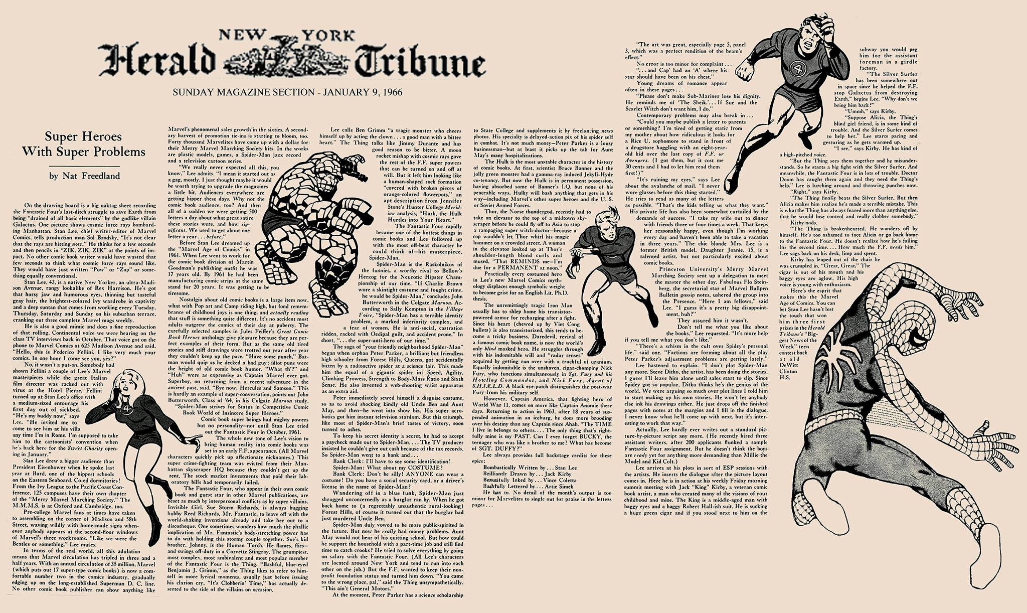 back 7 Nat Freedland, “Super-Heroes with Super Problems,” New York Herald Tribune, 9 January 1966. Reprinted in The Jack Kirby Collector #18, January 1998.