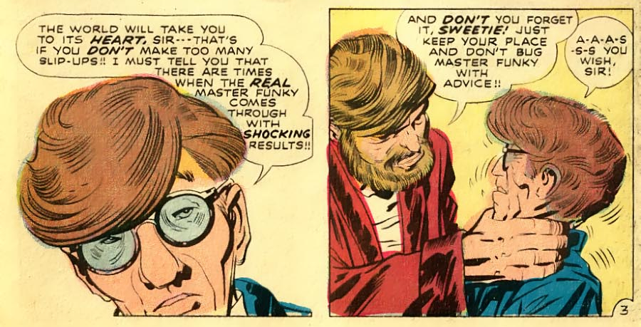 The car rides were an example of Lee playing to an audience, in this case Romita. The most egregious example of this is the Nat Freedland Herald Tribune article. Freedland wrote that he witnessed Lee’s “weekly Friday morning summit meeting with Jack ‘King’ Kirby.” At this point, Kirby’s trips to the office were nowhere near weekly in frequency since this was after he began using margin notes. The article’s portrayal of Lee’s act 7 presumably convinced Lee to incorporate it into his “workflow,” because it became a trademark.