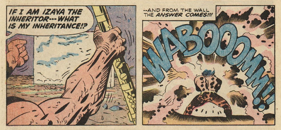 “And meanwhile, the Fantastic Four is in lots of trouble. Doctor Doom has caught them again and they need the Thing’s help.” Lee is lurching around and throwing punches.