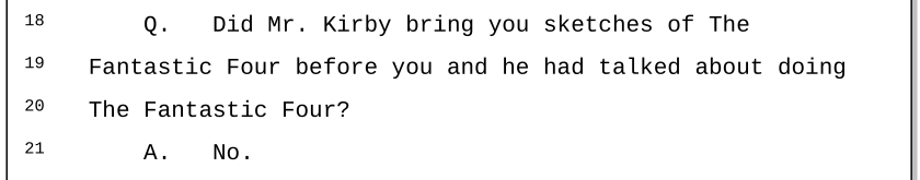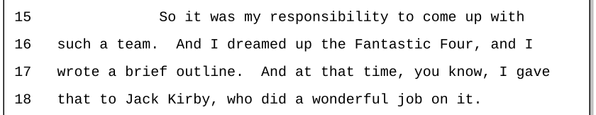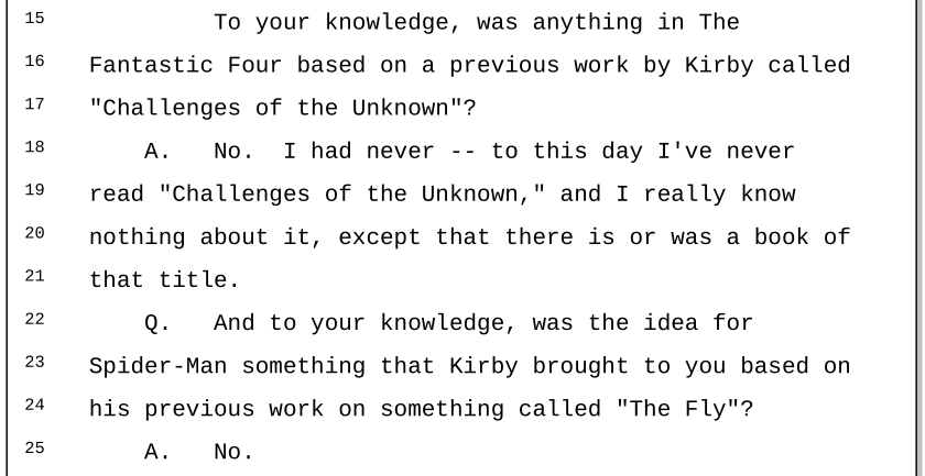 The Fantastic FourSpider-ManThe HulkThorThe X-MenNick Fury, refuted just a few years later by Tom BrevoortAnt-ManRawhide Kid, written by neither Lee nor LieberLee rationalizing his lies of inclusion in OriginsPay for rejected pages, refuted by every Kirby witnessFantastic Four concept sketches“Challenges” of the Unknown